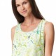 Легка бавовняна нічнушка від польського бренду Key. Ніч виконана з якісної і м'якої бавовни салатового кольору в ніжний зелений принт з листя. Нічня вільного крою, без рукавів і з круглим вирізом горла, спинка злегка подовжена, довжина вище колін.