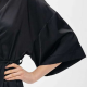 Короткий жіночий халат від українського бренду Shato виконаний з якісного та м'якого шовку Армані, вільного крою та з рукавами 3/4. Модель чорного кольору з приспущеною лінією плеча і розширеними рукавами зав'язується на запах за допомогою пояса. Халат дуже красивий і комфортний, ідеальний для домашнього користування, також може бути чудовим подарунком коханій або близькій людині.